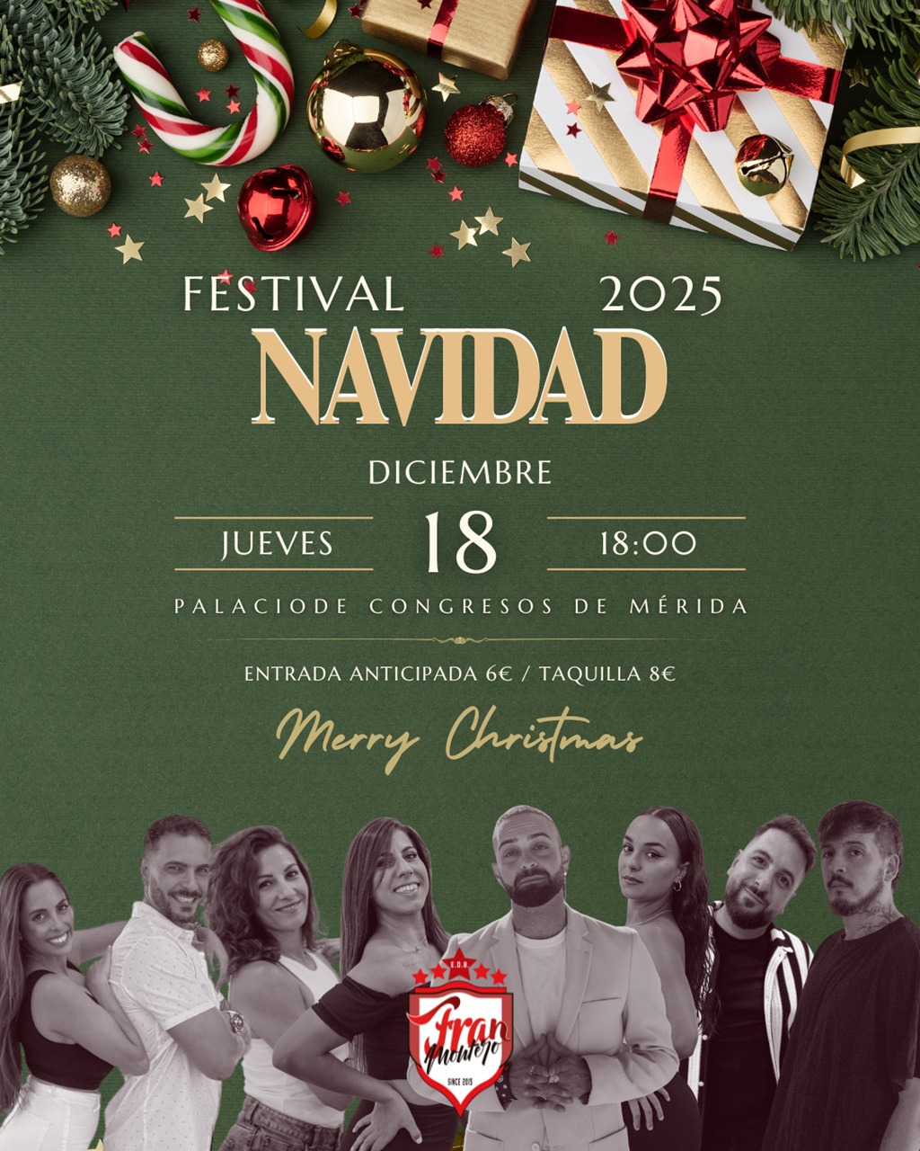 El Palacio de Congresos acoge el Festival de Navidad de la Escuela de Baile Fran Montero el jueves 18 de diciembre, a partir de las 18:00 horas. El precio de la entrada es de 6 euros anticipada y 8 euros en taquilla. A la venta anticipada en la propia Escuela.