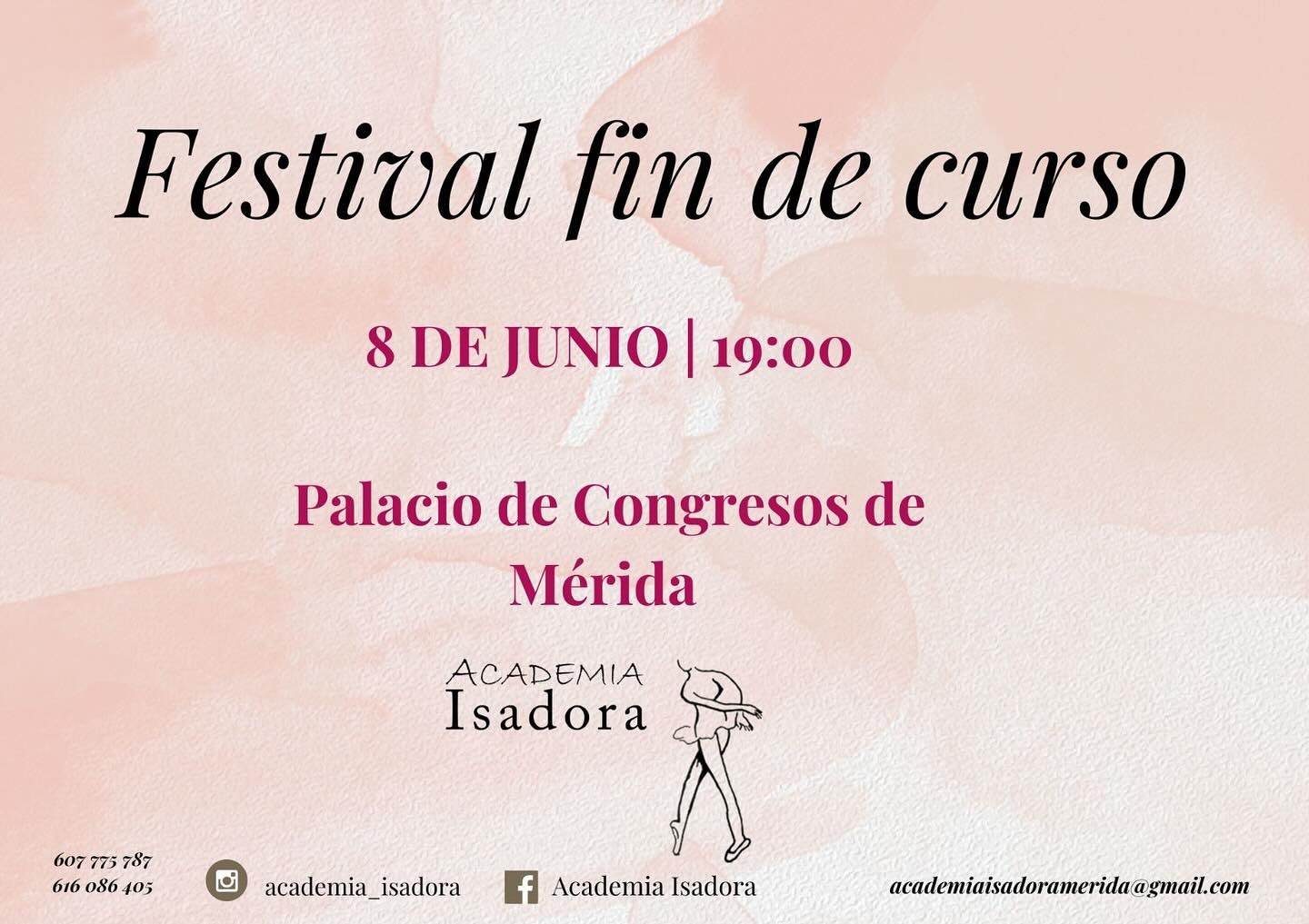 El alumnado de la Academia Isadora pone punto y final al curso con la celebración de este festival. Las entradas se pueden adquirir en la Academia Isadora (C/Graciano 18), de lunes a jueves de 16:00h a 20:00h.