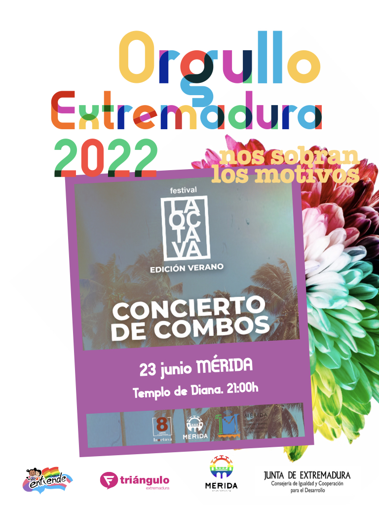 Dentro de las actividades de la Semana del Orgullo LGTBI, la Octava presenta su festival de verano con un Concierto de Combos, el jueves 23 de junio, a las 21:00 horas, en el Templo de Diana. Acturarán dos formaciones musicales diferentes pero que trabajan en la misma línea: el conocimiento de la música moderna tanto actual como desde sus raíces y diferentes evoluciones y variaciones. Primero actuará el Combo Junior, formado por destacados alumnos de joven edad que harán una muestra de la música pop y rock actual. Posteriormente, actuará el Combo Adulto, formado por alumnos destacados y profesores y que hará una muestra de algunos de los más conocidos temas de Jazz, blues, soul y rock.