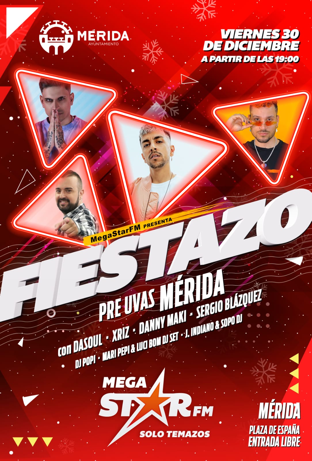 El viernes 30 de diciembre se celebrará, en la Plaza de España, la Fiesta de las Preuvas, un evento que contará con la mejor música de la mano de MegaStar FM con artistas de prestigio Dasoul, Xriz y Danny Maki, presentados por Sergio Blázquez, así como la participación de los DJ’s locales: DJ Popi, Mari Pepi & Luci Bom DJ set y J.Indiano & Sopo DJ