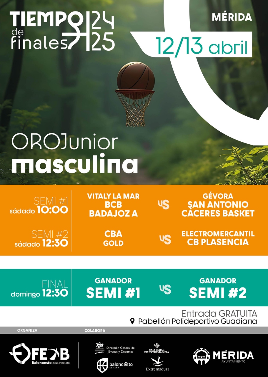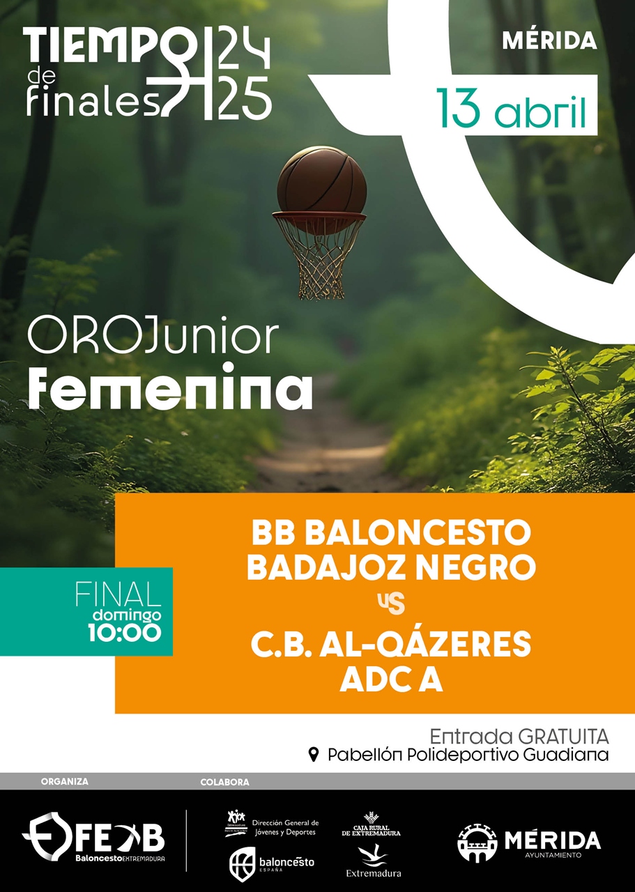 El fin de semana del 12 y 13 de abril se disputan en el Pabellón del Complejo Polidportivo Guadiana las finales de las categorías Oro Junior de Baloncesto tanto masculina como femenina. Organiza Federación Extremeña de Baloncesto.