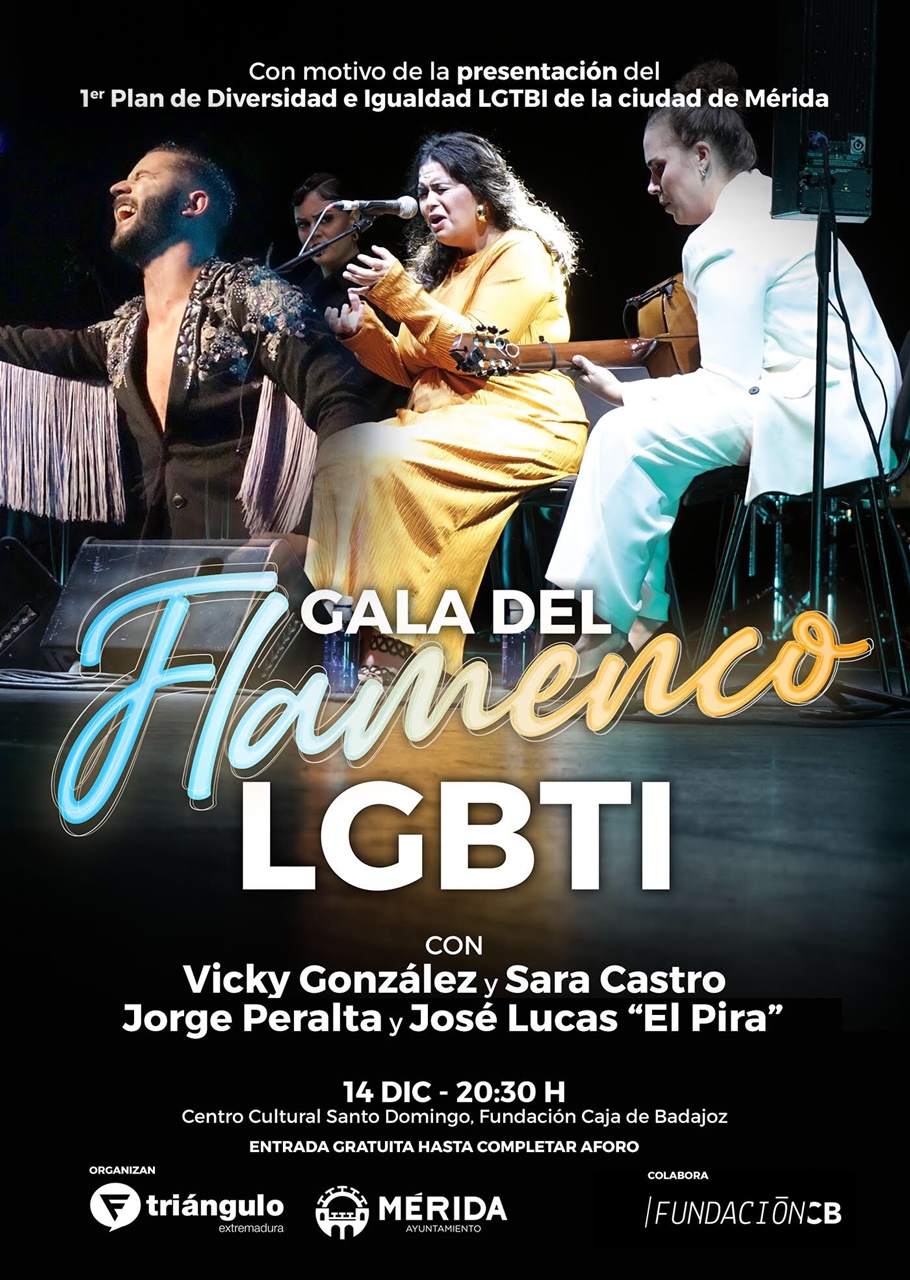 Con motivo de la presentación del 1er Plan de Diversidad e Igualdad LGTBI de la ciudad de Mérida, el próximo 14 de diciembre, a las 20:30, el Centro Cultural Santo Domingo de la Fundación CB acoge la Gala de Flamenco LGBTI con la participación de Vicky González y Sara Castro junto con Jorge Peralta y José Lucas «El Pira».