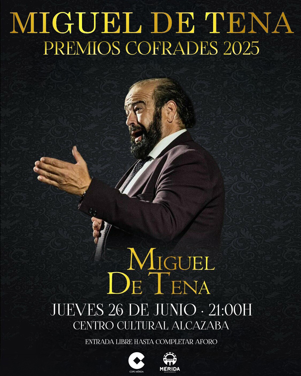 El acto, el próximo 26 de junio, a las 21:00h, servirá para poner el punto final a la Semana de Pasión emeritense, que como es tradición reunirá a cientos de cofrades emeritenses y de toda la región para aplaudir a los premiados y hacer balance de la Semana Santa de este 2025. Contará con la actuación del cantaor flamenco Miguel de Tena.