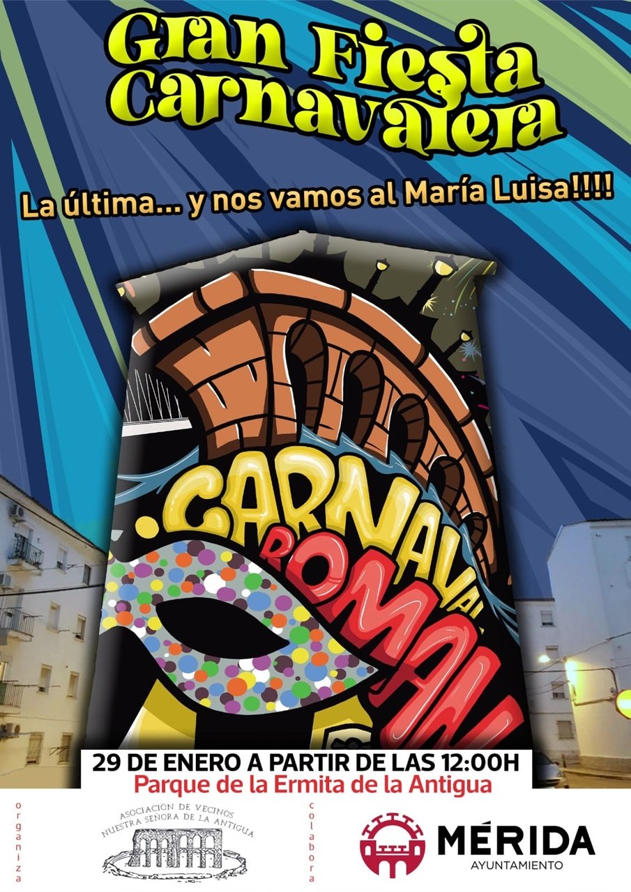La asociación de vecinos Nuestra Señora de La Antigua organiza, un año más, la Fiesta Carnavalera de La Antigua, el domingo 29 de enero, a partir de las 12:00 horas, en el Parque de la Ermita de La Antigua. Habrá actuaciones de grupos carnavaleros y DJs y degustaciones gratuitas.