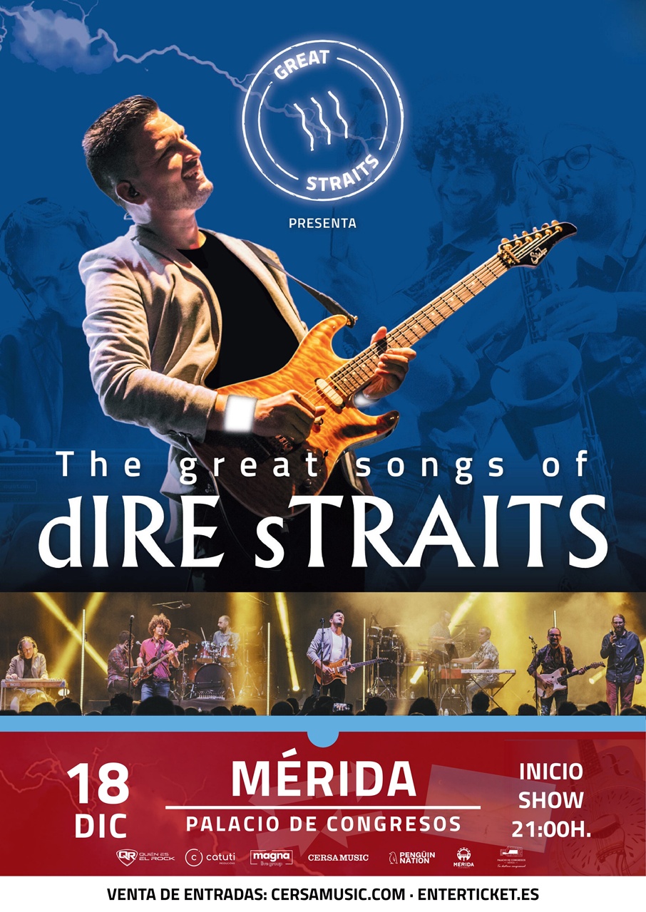 “The Great Songs of DIRE Straits” es el nuevo espectáculo musical de Óscar Rosende y su nueva banda Great Straits, en el que rinde homenaje a la exitosa carrera musical de Dire Straits. Un auténtico viaje sonoro con el que volver a disfrutar en directo de la magia de todos los grandes éxitos compuestos por Mark Knopfler, con una puesta en escena única en Europa y el aval de Óscar Rosende, guitarrista coruñés que llegó a confundir al propio músico escocés y su banda: “Estaba tocando Why Aye Man y tengo que decir que pensé que era una grabación nuestra” – Guy Fletcher (teclista de dIRE sTRAITS)
