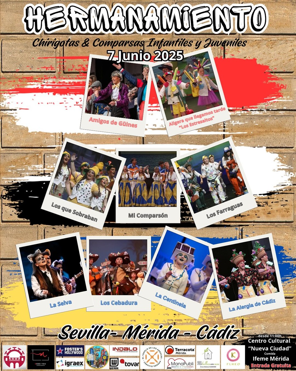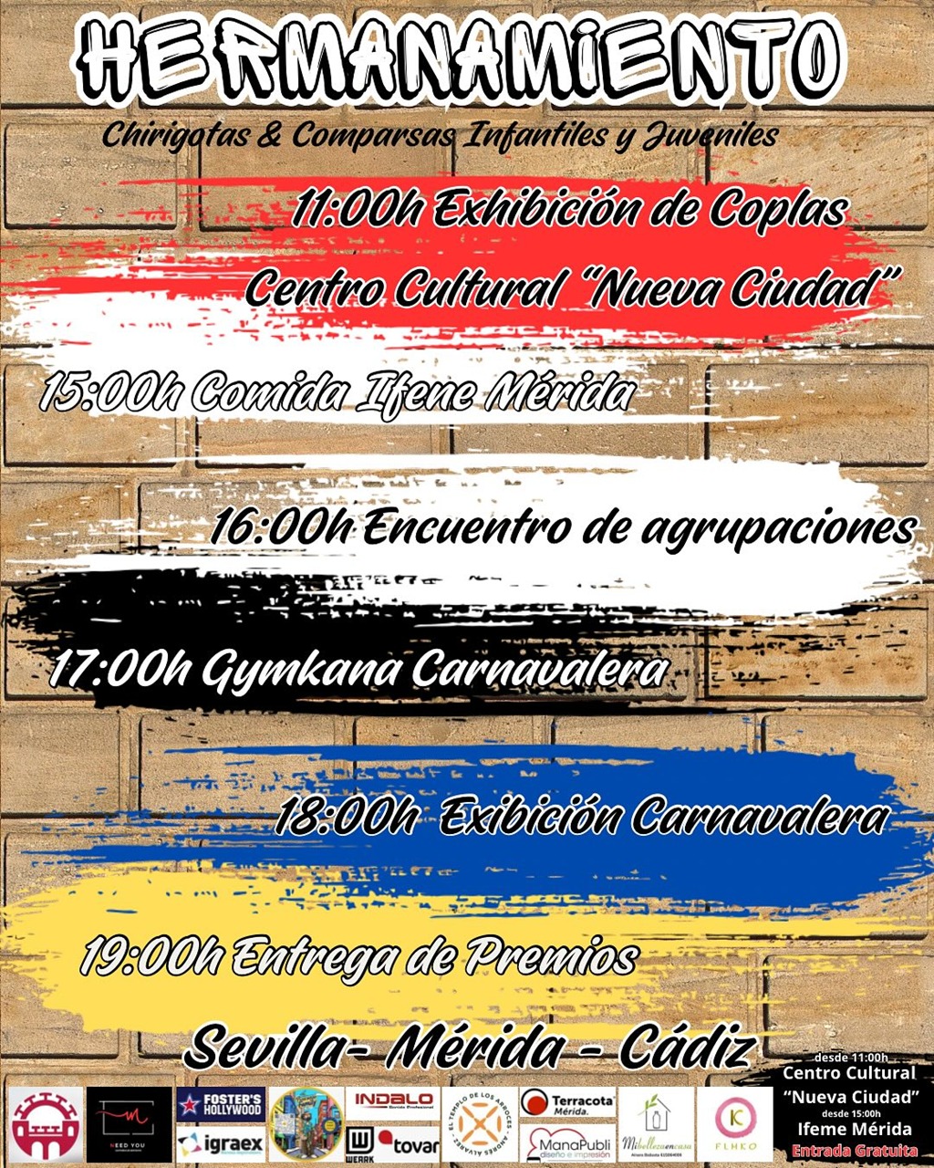 El 7 de junio, a partir de las 11:00 horas, el Centro Cultural de Nueva Ciudad acogerá actuaciones de agrupaciones juveniles carnavaleras de Sevilla, Mérida y Cádiz que nos deleitarán con sus coplillas. Entrada libre hasta completar aforo. Posteriormente, ya en IFEME habrá una convivencia de carnaval donde habrá comida, exhibiciones, encuentro de agrupaciones y entrega de premios. Es una jornada abierta a toda la ciudadanía para disfrutar de un gran ambiente carnavalero.