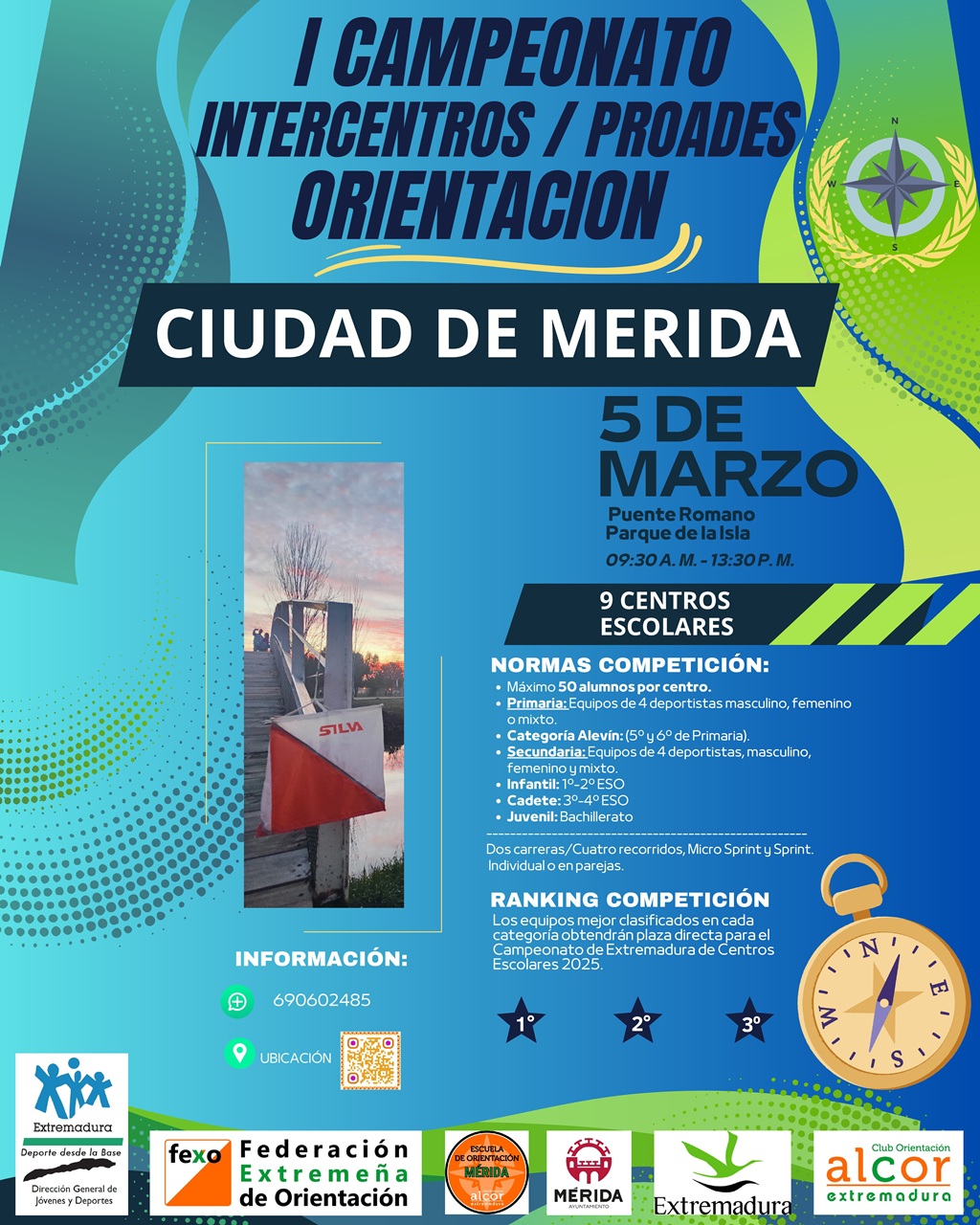 El 5 de marzo tendrá lugar. en el Parque de La Isla/Puente Romano, el Campeonato Intercentros de Orientación, desde las 9:30 hasta las 13:30 horas. Organiza: Federaciones Extremeñas y españolas de Orientación.