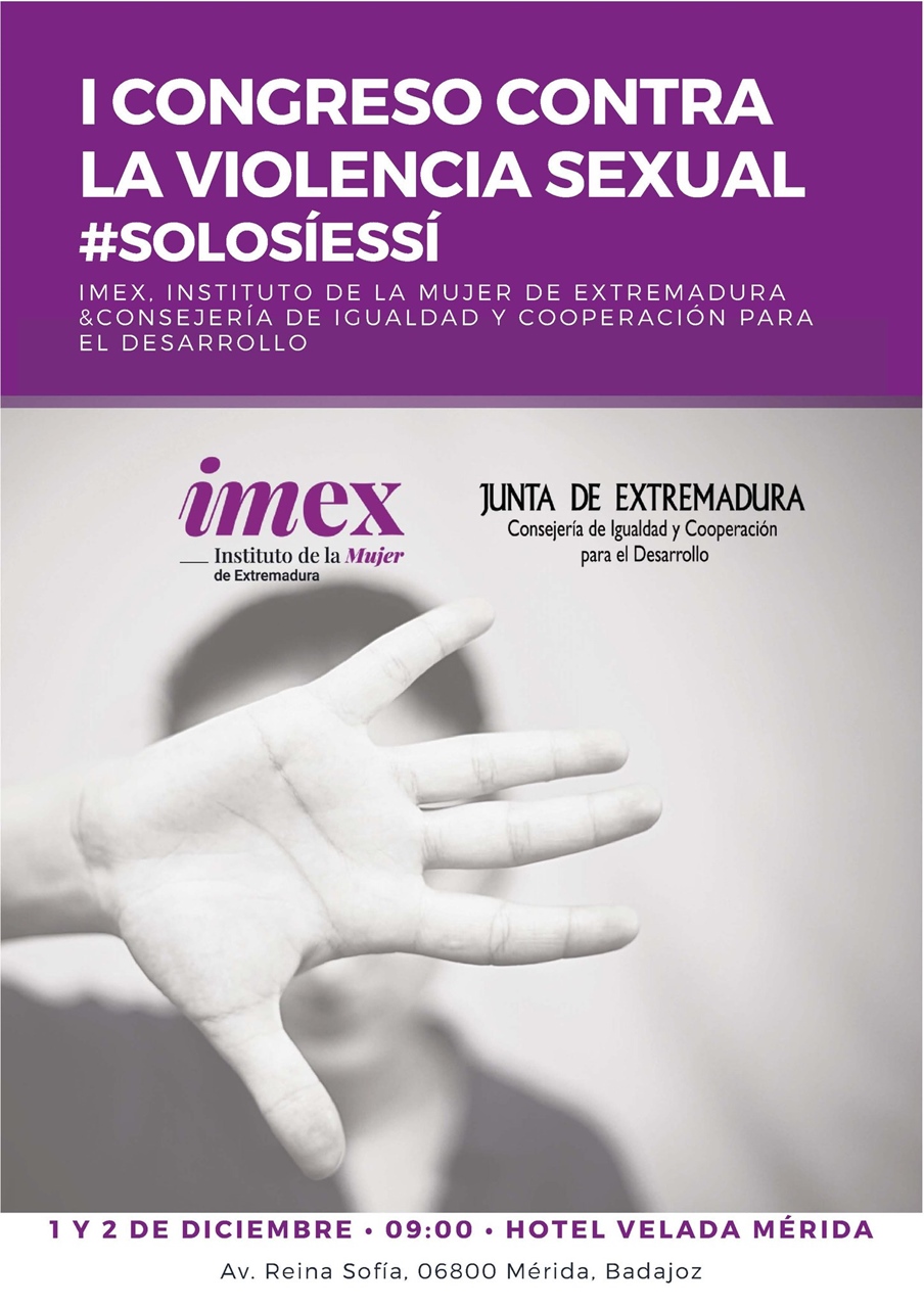La Violencia Sexual es una forma más de violencia de género. Para analizar los diferentes elementos implicados en estos delitos, el Instituto de la Mujer de Extremadura IMEX ha organizado un congreso que bajo el lema #solosíessí que reunirá los días 1 y 2 de diciembre en Mérida a expertos y expertas de diferentes ámbitos.