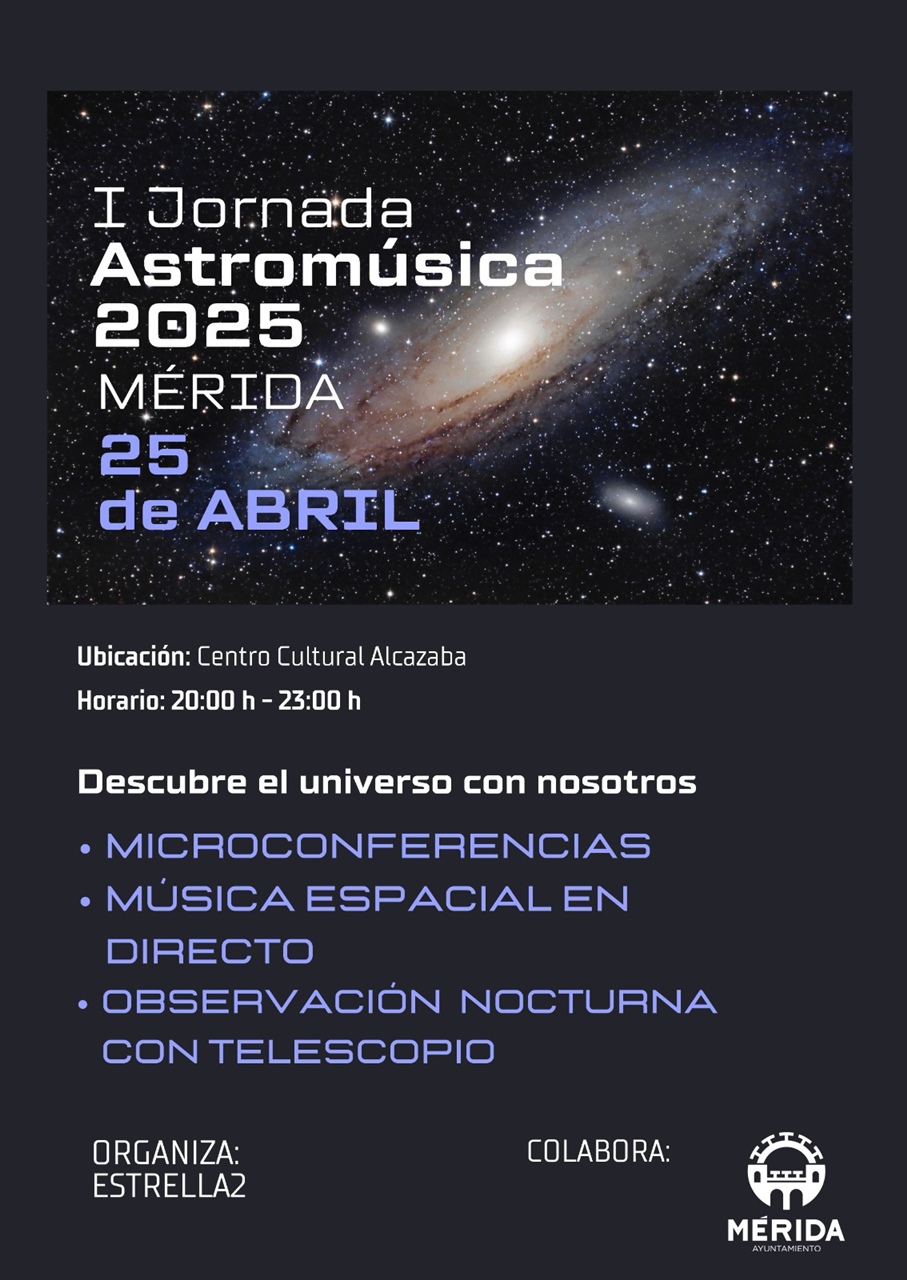 La I Jornada Astromúsica unirá música en directo, conferencias y observación el viernes, 25 de abril, en la terraza del centro cultural Alcazaba, de 20 a 23 horas.