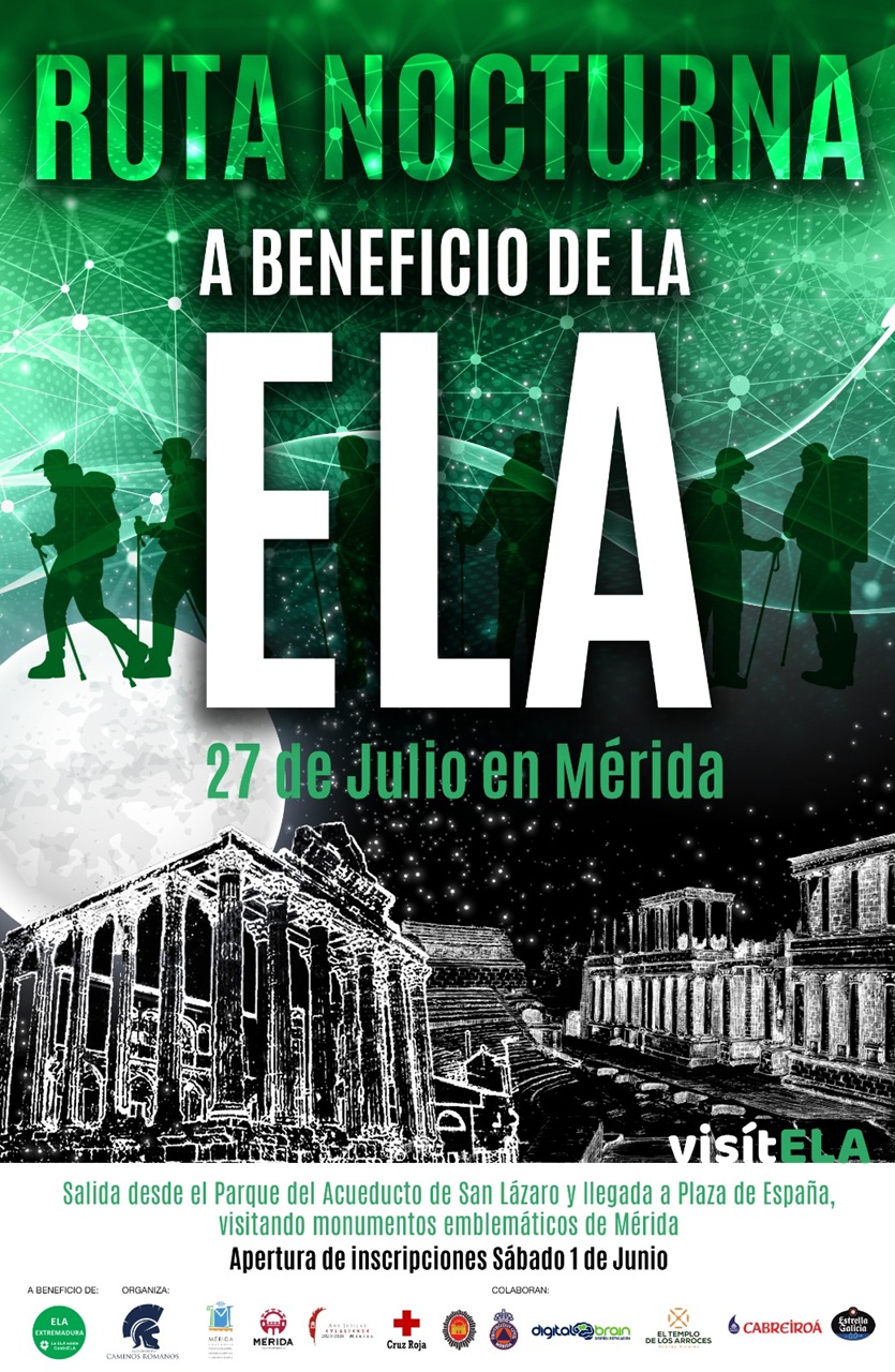 El Club Deportivo Caminos Romanos organiza la I Ruta Nocturna por la ELA el próximo sábado 27 de julio, a partir de las 21:30 horas, a beneficio de ELA Extremadura. Se trata de una ruta urbana que transcurre cerca de los monumentos de la ciudad.