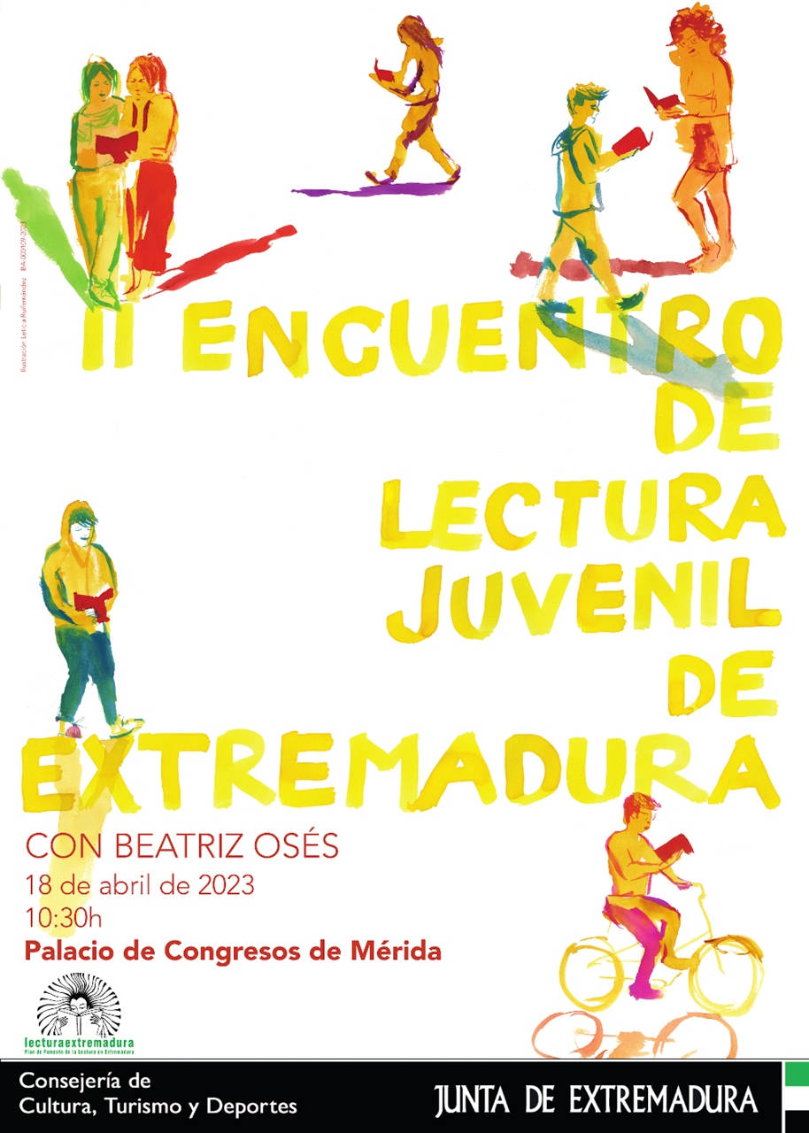 Desde el Plan de Fomento de la Lectura en Extremadura hemos organizado el II encuentro de lectura juvenil de Extremadura. Este encuentro tendrá lugar el 18 de abril de 2023, a las 10:30 horas, en el Palacio de Congresos de Mérida. La escritora invitada será Beatriz Osés.
