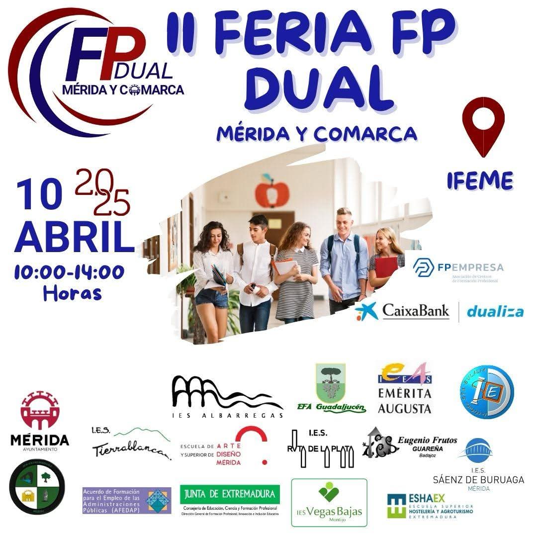 El próximo 10 de abril, entre las 10:00 y las 14:00 horas, IFMEME acoge la II Feria de FP Dual de Mérida y comarca, donde las personas asistentes podrán conocer la oferta formativa de todos los institutos de Mérida y localidades cercanas. Una oportunidad excelente para que el alumnado de los últimos cursos de ESO y Bachillerato, así como sus familias, se informen para decidir su futuro formativo y profesional.