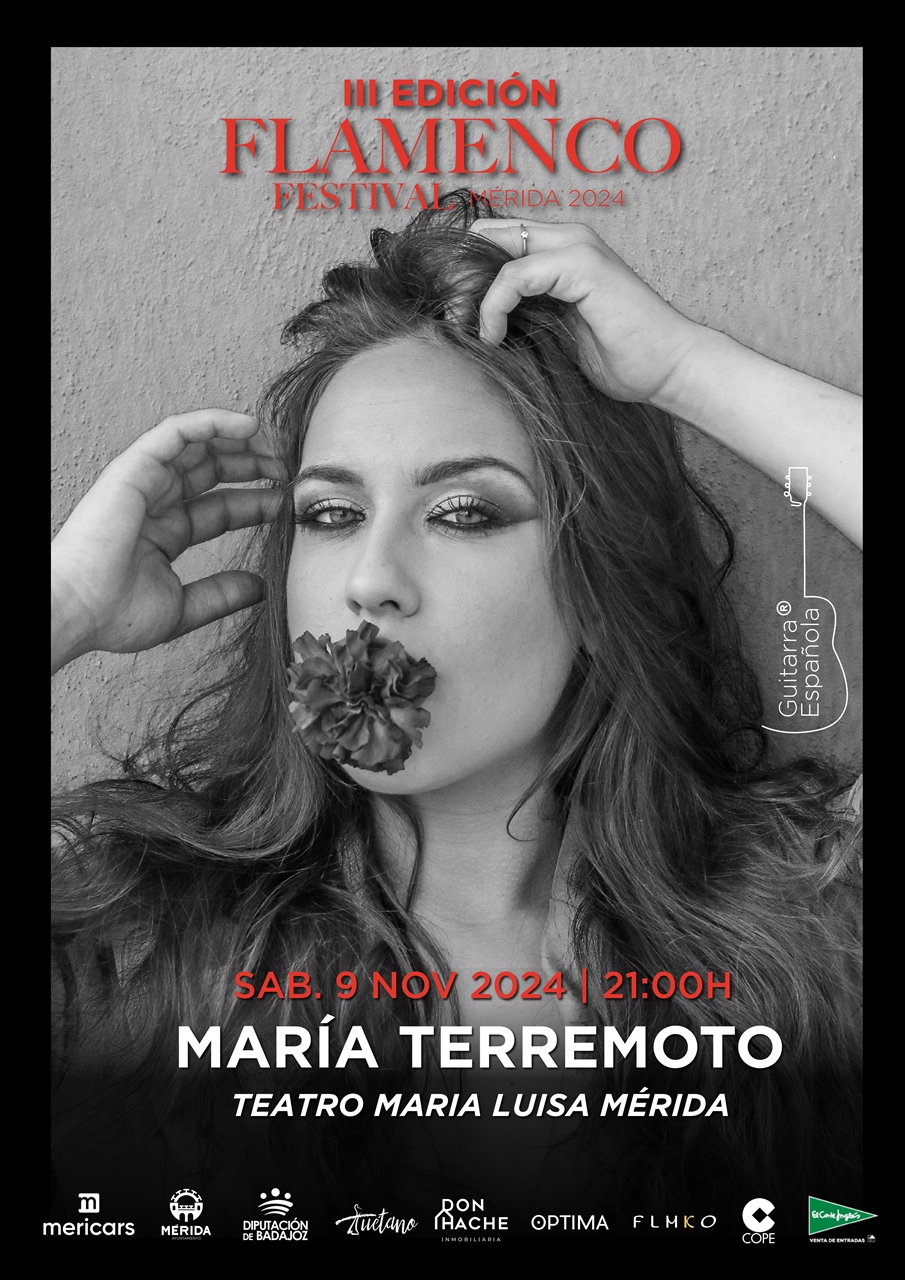 La niña jerezana que sorprendió a todos con tan sólo dieciséis años, haciéndose con galardones tan importantes como el Giraldillo Revelación de La Bienal de Flamenco de Sevilla o La Venencia Flamenca, se ha convertido en una auténtica figura del cante jondo. Llevando en su espalda el legado de una de las sagas flamencas más importantes de las últimas décadas, María Terremoto ha sabido darle un nuevo aire a su cante tradicional, llevándolo hasta un público que no rondaba los ambientes más tradicionales hasta ahora y que con su llegada al mundo flamenco se ha acercado a este arte milenario.