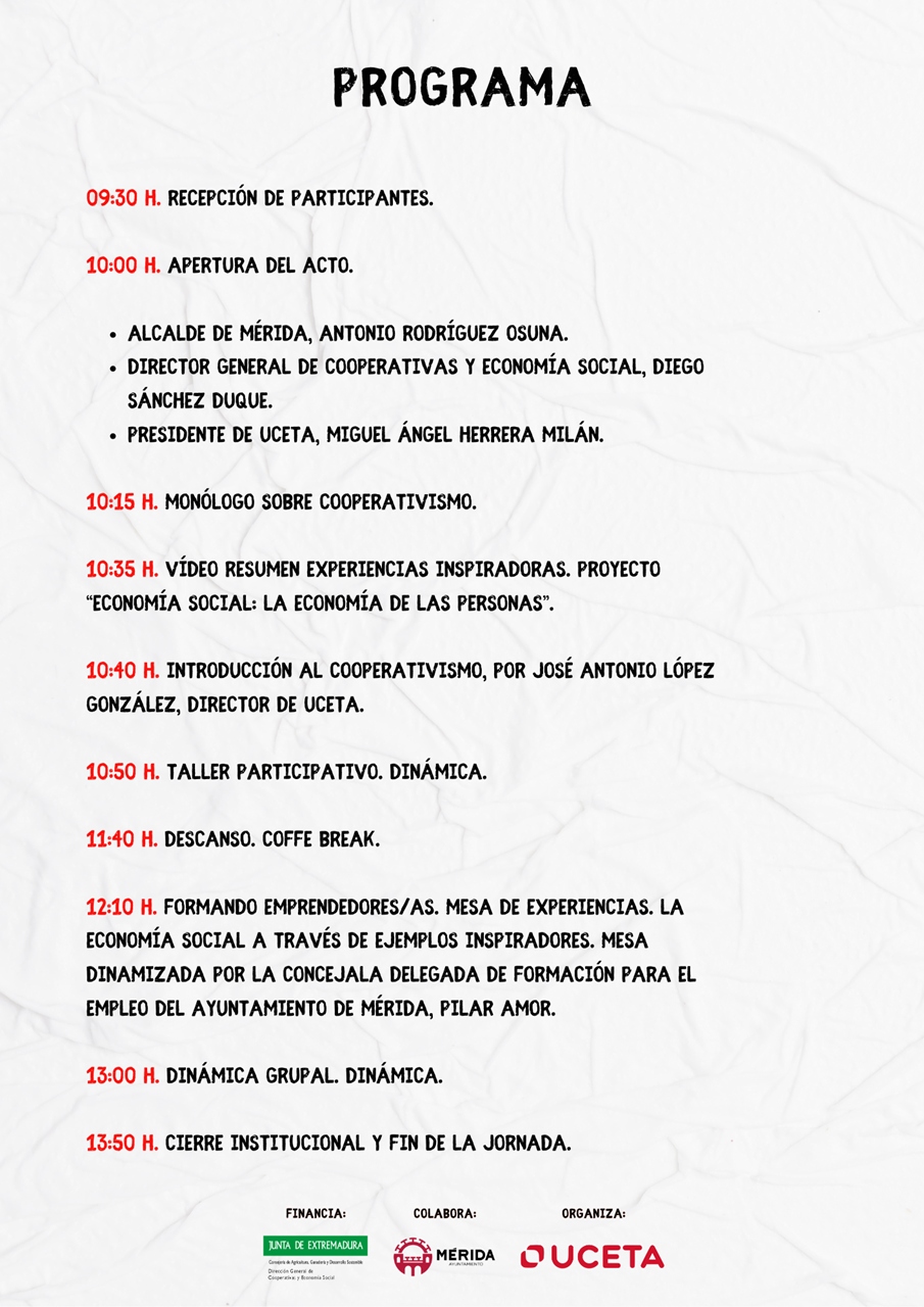 Actividad financiada por la Dirección General de Cooperativas y Economía Social de la Junta de Extremadura. Colabora el Ayuntamiento de Mérida
