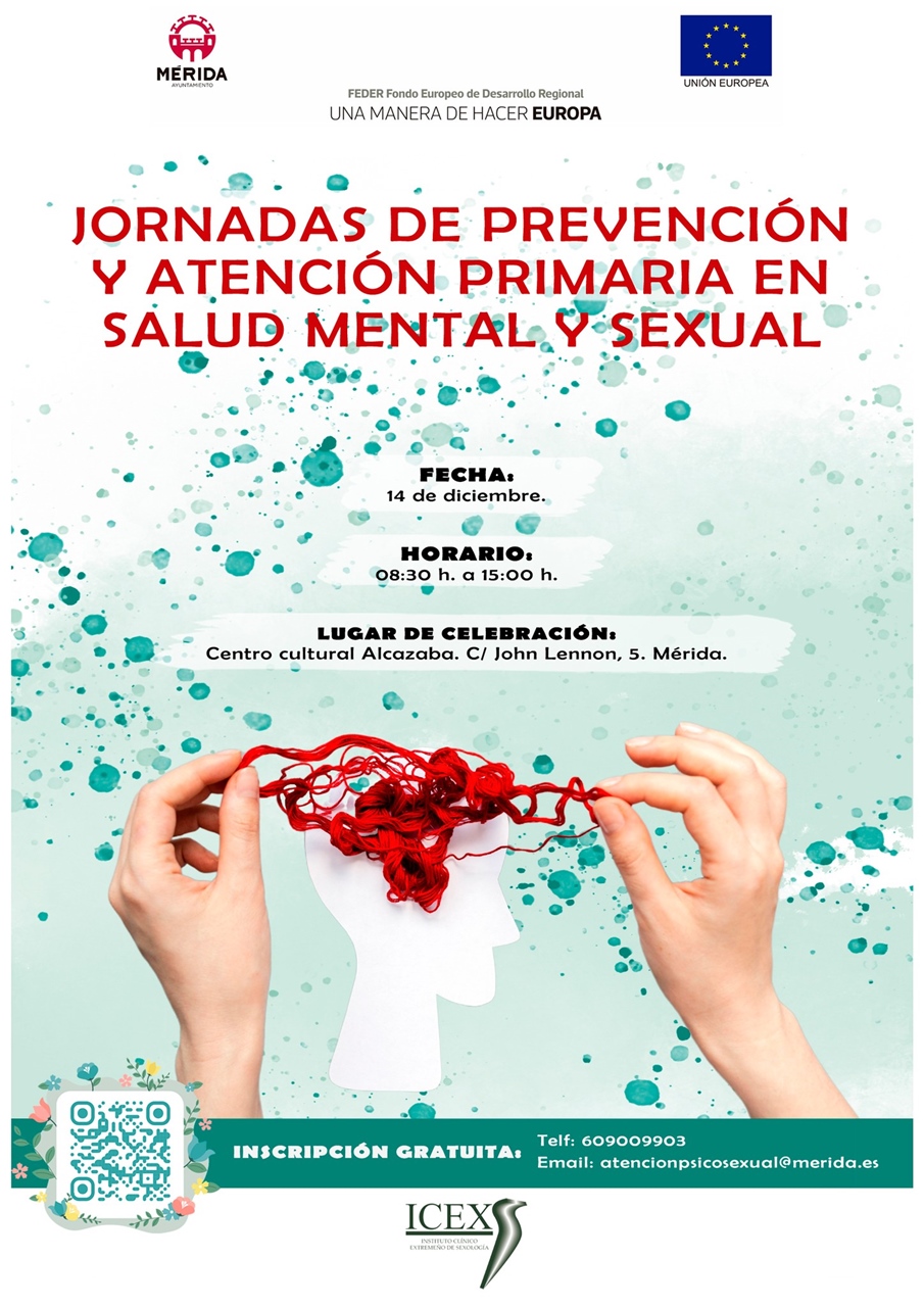 Estas Jornadas se enmarcan dentro del Programa de prevención y atención primaria en salud mental y sexual perteneciente al Plan de Acción Social 2022-2025 que está dentro de la EDUSI Mérida Central. Programa que está gestionado por el Instituto Clínico Extremeño de Sexología.