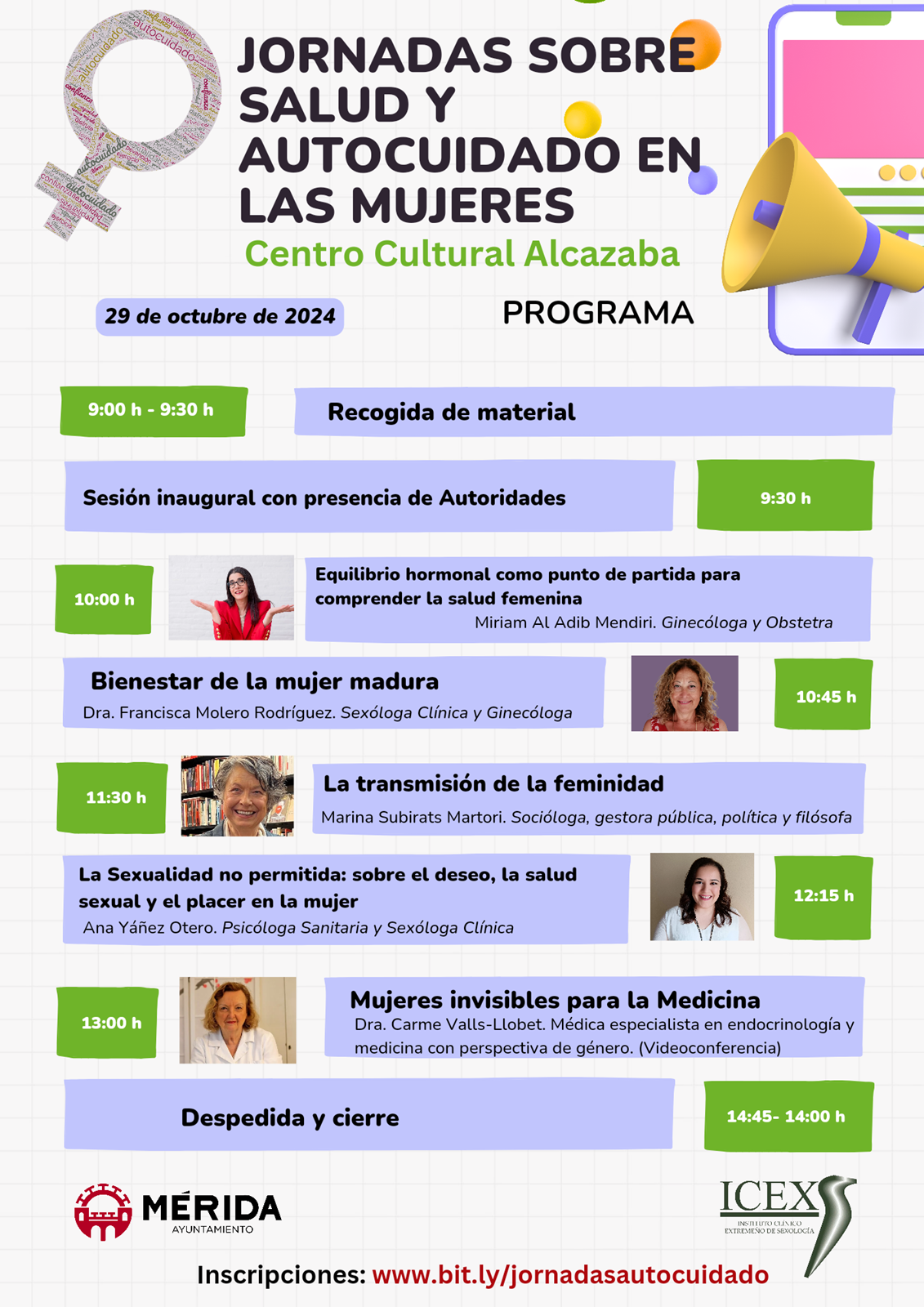 La delegación de Igualdad de Oportunidades entre mujeres y hombres, en colaboración con el Instituto Técnico Extremeño de Sexología ha organizado, para el próximo 29 de octubre, las Jornadas sobre Salud y Autocuidado de las Mujeres.