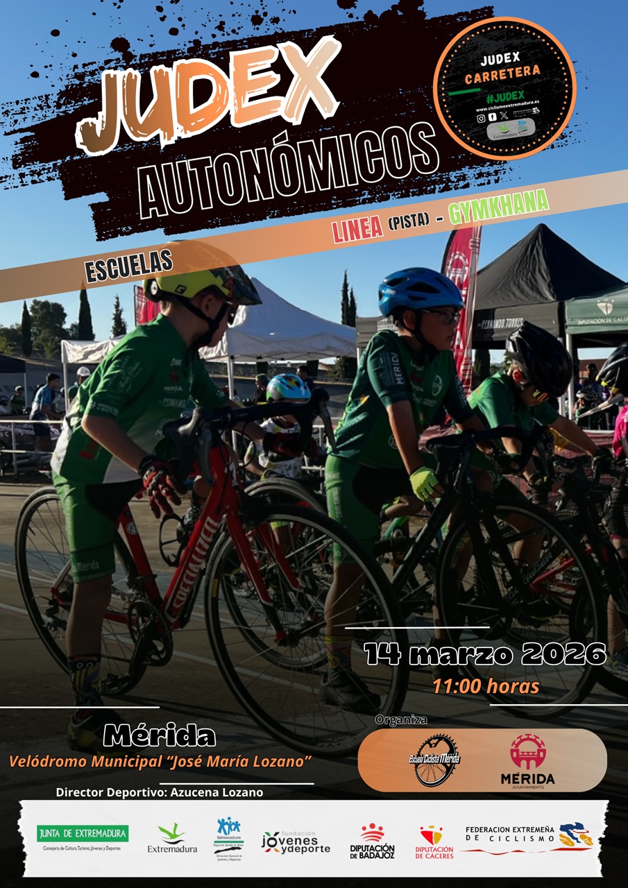 El Velódromo Municipal José María Lozano acogerá el sábado 14 de marzo, a partir de las 11:00 horas, los JUDEX Autonómicos de Ciclismo organizado por la Escuela Ciclista Mérida con la colaboración de la Federación Extremeña de Ciclismo y el Ayuntamiento de Mérida.