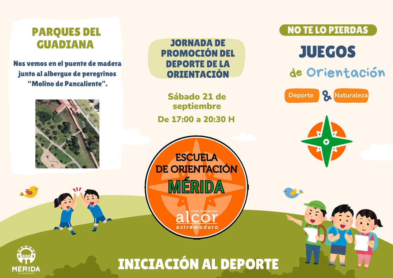 El sábado 21 de septiembre, a partir de las 17:00 horas, en los parques del Guadiana (junto al Molino de Pancaliente) se desarrollarán juegos de orientación ‘Iniciación al Deporte’, una actividad totalmente gratuita de carácter familiar destinada a promocionar y conocer el deporte de Orientación.