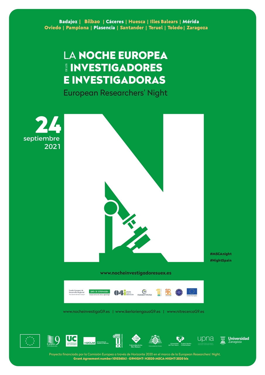 La Universidad de Extremadura (Servicio de Difusión de la Cultura Científica) y Fundecyt-PCTEx organizan, un año más, ‘La Noche Europea de los Investigadores’, el viernes 24 de septiembre de 2021, en los diferentes campus universitarios de la región con el objetivo de acercar el conocimiento científico al público en general, y en particular a los más jóvenes, y promover la visibilidad de sus investigadores.
