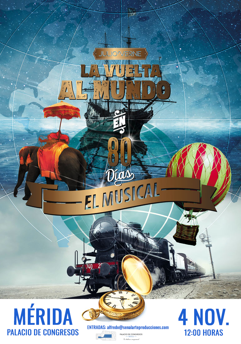 La obra maestra de Julio Verne en una adaptación sabia, divertida y trepidante. Una comedia musical fuera de control, trenes que se escapan y una carrera a contrarreloj alrededor del mundo, atravesando los rincones más extraordinarios de cada país: España, Egipto, India, China, etc. Una obra de acción y aventura donde priman las risas, y que a mismo tiempo nos transmite un mensaje importante: La determinación y la fe en uno mismo, puede superar cualquier obstáculo.