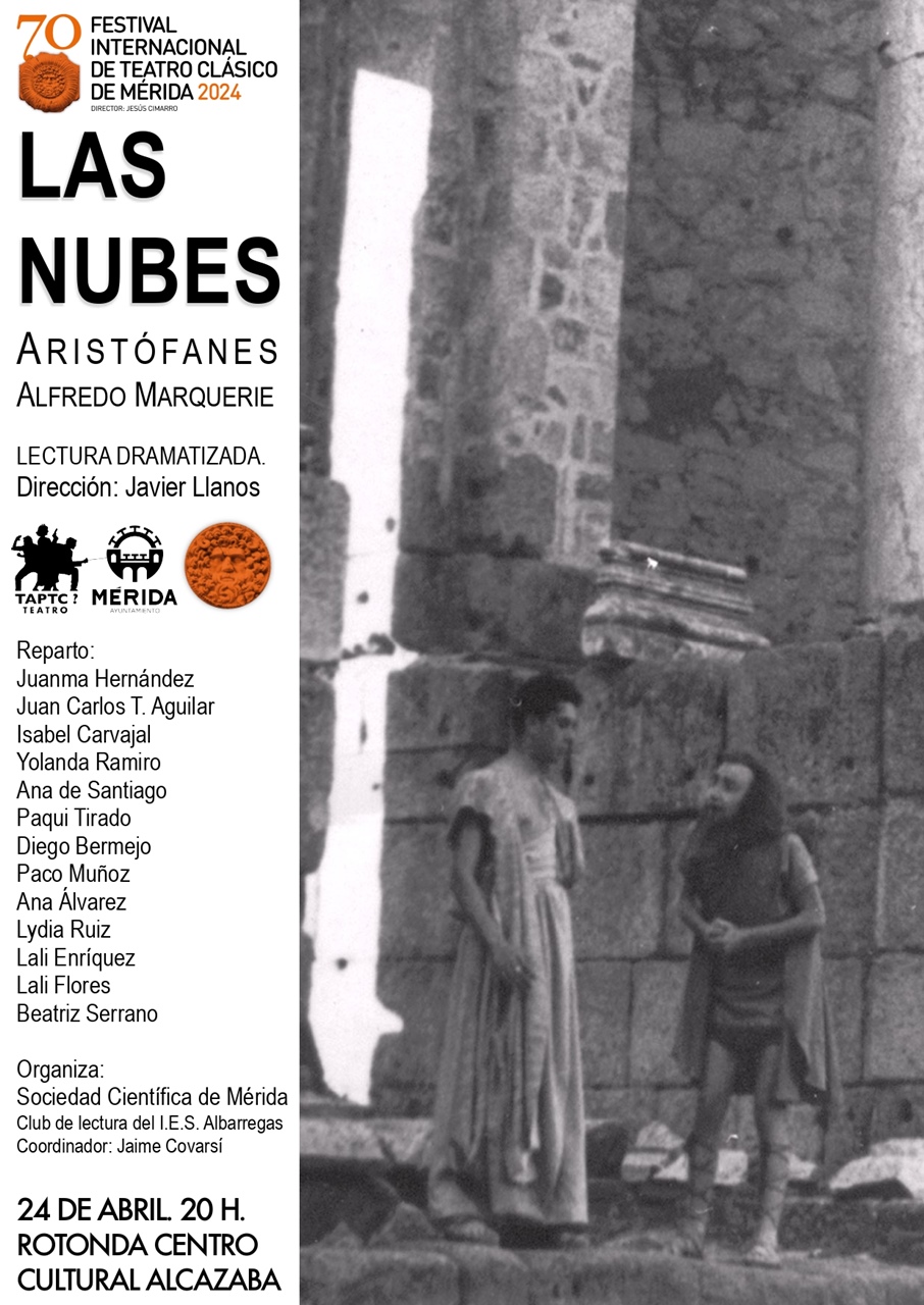La rotonda del Centro Cultural Alcazaba de Mérida acogerá el miércoles 24 de abril a las 20 horas la lectura dramatizada de ‘Las nubes’, de Aristófanes, en versión de Alfredo Marquerie.