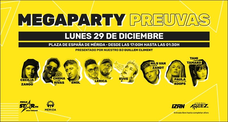 El lunes 29 de diciembre, a partir de las 17:00 horas, la Plaza España acoge, un año más, la Megaparty Preuvas Fin de Año de la mano de MegaStarFM con un espectáculo que se prolongará hasta la 01:30 de la madrugada con numerosos artistas. A las 17:00 horas, comenzarán djs y artistas locales y a […]