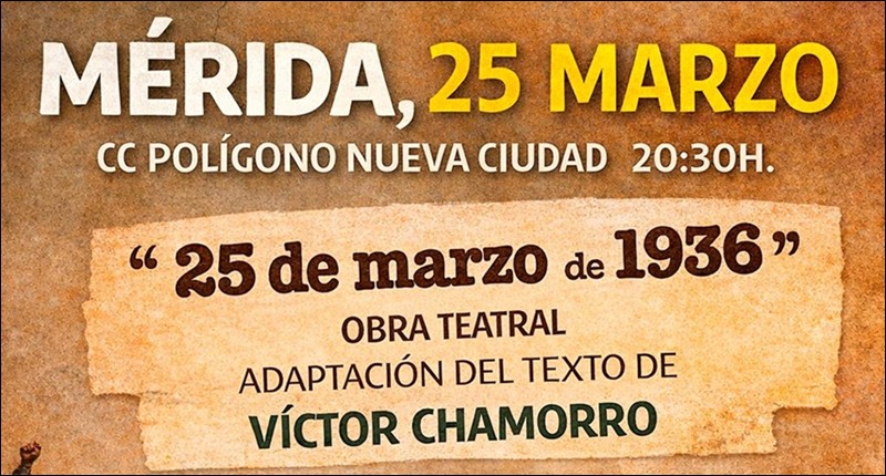 El miércoles 25 de marzo, a las 20:30 horas, el Centro Cultural de Nueva Ciudad pone en escena la representación de la obra '25 de marzo de 1936' que narra […]