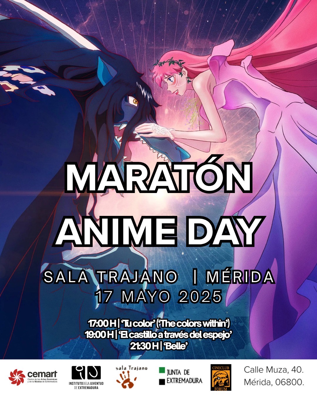 La Sala Trajano de Mérida acoge el sábado 17 de mayo de 2025, a las 17.00 horas, una maratón de proyecciones de anime, ofreciendo una mirada profunda al mundo de la adolescencia a través de las obras de tres destacados directores de animación japonesa.