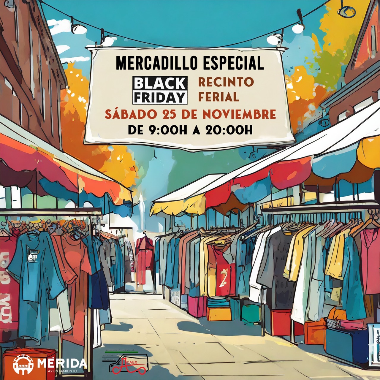 Mérida tendrá un Mercadillo Especial por el Black Friday el sábado 25 de noviembre, de 9:00 a 20:00 horas, en horario ininterrumpido, en el Recinto Ferial. Un mercadillo que se organiza para compensar los dos martes que no ha podido celebrarse por la Feria
