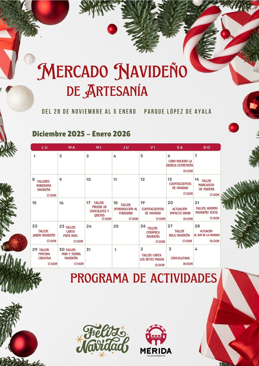Del 28 de noviembre de 2025 al 5 de enero de 2026, estará instalado en el Parque López de Ayala el Mercado Navideño de Artesanía con 19 casetas de distintos artesanos y artesanas además de la caseta solidaria destinada a diferentes entidades benéficas que irán rotando.