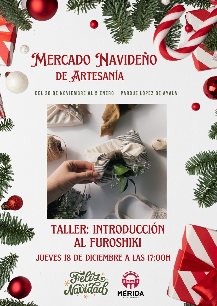 Una forma diferente, sostenible y estética de envolver los regalos navideños, que será impartido por Vega Aceña. 12 Plazas.
