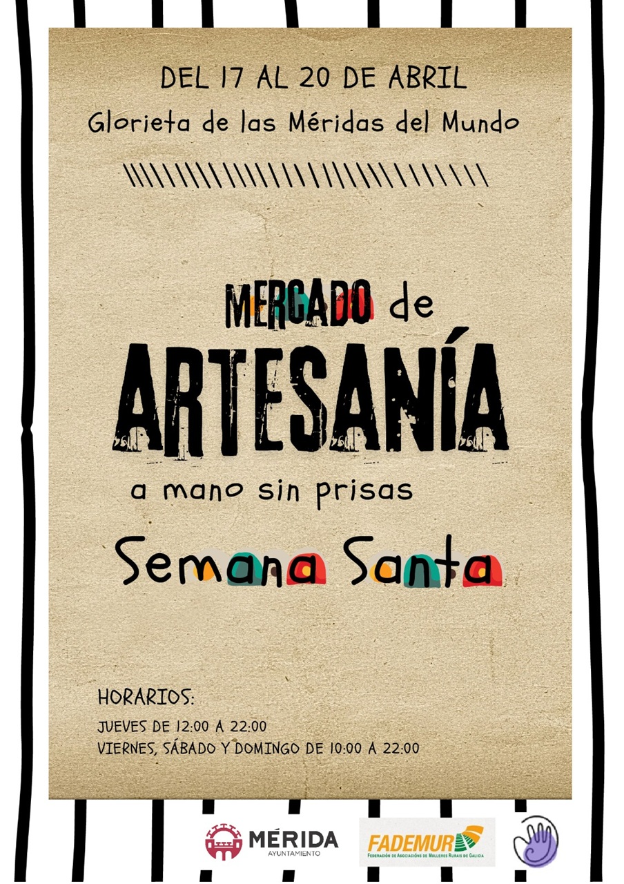 La Plaza de las Méridas del Mundo acogerá el Mercado de artesanía de Semana Santa de la Asociación “A mano sin prisas”, desde el Jueves Santo al Domingo de Resurrección (17 al 20 de abril).