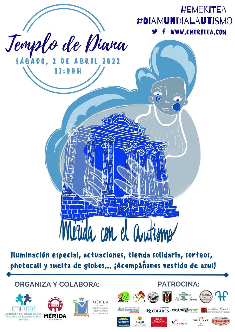 El sábado, 2 de abril, a partir de las 17:00 horas, la asociación EmeriTEA organiza ‘Mérida con el Autismo’, una jornada de convivencia y concienciación sobre el autismo, coincidiendo con la celebración del Día Mundial del Autismo que se celebra ese mismo día. Se organizarán actuaciones, suelta de globos, tienda solidaria, photocall y se finalizará con la iluminación especial de diversos monumentos de la ciudad que lucirán de azul.