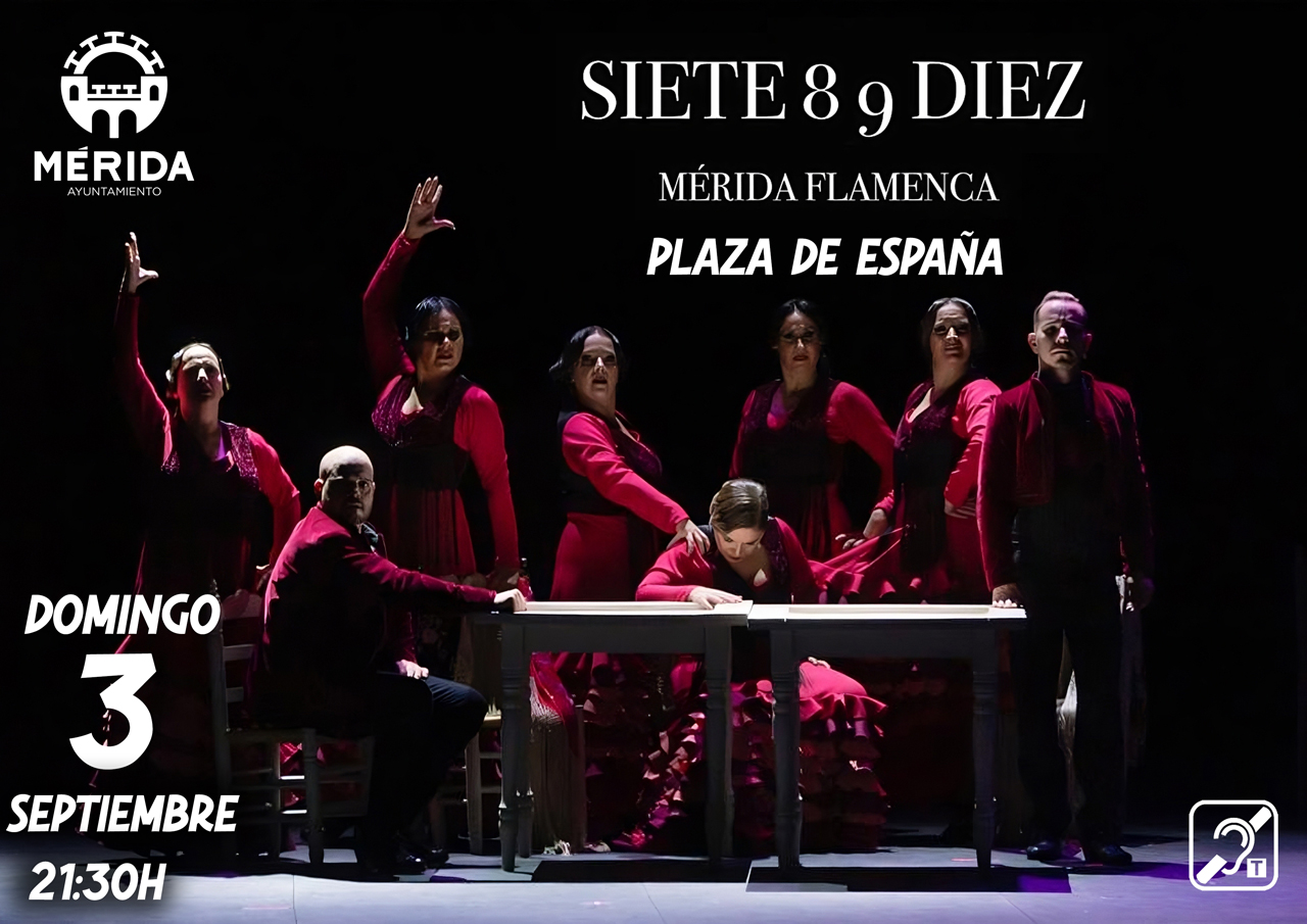 ‘Mérida Flamenca’ ofrecerá su nuevo espectáculo ‘Siete 8 9 Diez’, el domingo 3 de septiembre, a las 21:30 horas, en la Plaza de España, dentro de las actividades de la Feria y Fiestas de Mérida.