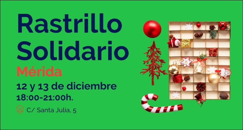 La delegación de Mérida de la Asociación Española contra el Cáncer organiza un Rastrillo Solidario los días 12 y 13 de diciembre, de 18:00 a 21:00 horas, en el Convento de Santa Clara (Sede del Consorcio).