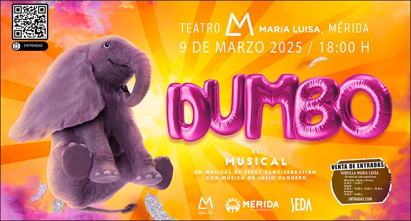 DOMINGO Día 9 de marzo de 2025. 18:00 horas Espectáculo: DUMBO, EL MUSICAL Compañía: Candileja Sinopsis: Dumbo, un pequeño elefante con unas grandes orejas, acaba de llagar al magnífico “Circo del Tiempo” donde lo convierten en el hazmerreír debido a su diferencia. Pero Dumbo no se viene abajo, gracias a su amigo el ratón Cacahuete, […]