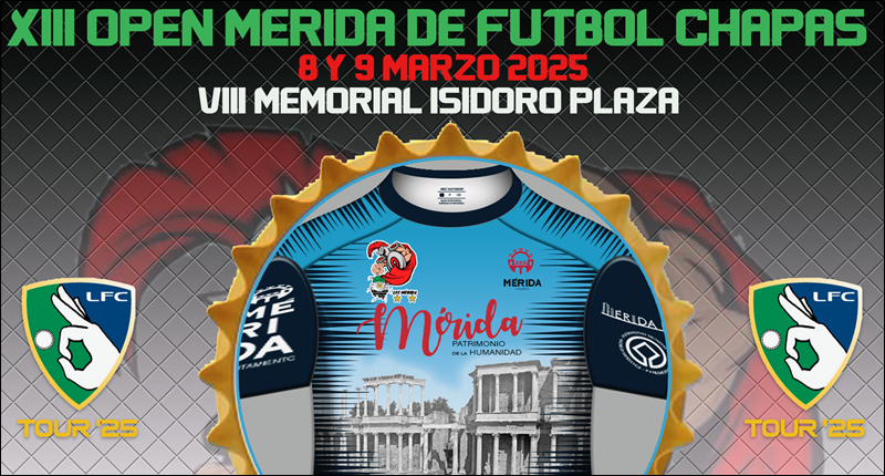 El 8 y 9 de marzo, el Pabellón de Nueva Ciudad acoge el XIII Open Mérida de Futbol Chapas y VIII Memorial Isidoro Plaza, con acceso gratuito desde las 10:00 horas. Organiza Futbol Chapas Mérida.