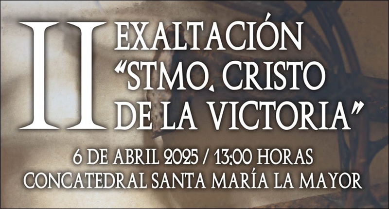 La Asociación Parroquial Stmo. Cristo de la Victoria organiza el domingo 6 de abril, a las 13:00 horas, en la Concatedral de Santa María, la II Exaltación Stmo. Cristo de la Victoria a cargo del periodista Eloy López con saetas interpretadas por Eusebio Oliva, El Niño Bermejo, Soraya Vega y José María Jiménez. Presenta Mario […]