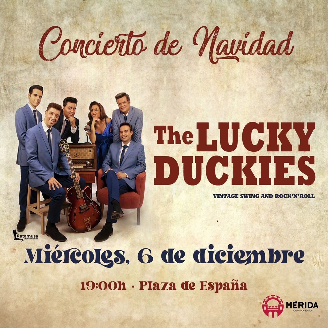 El martes 5 de diciembre, se celebrará un Concierto de Navidad en la Plaza de España a cargo del grupo portugués Lucky Duckies, una banda “revival” que parece sacada de algún casino de Las Vegas en los años 50 o 60. Los músicos forman una mezcla inigualable de jazz que incluye piano, bajo, guitarra y batería.