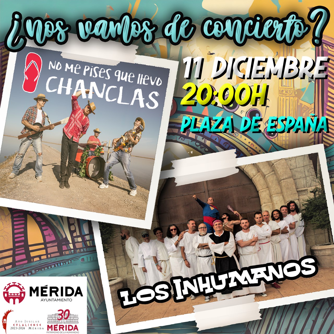 El lunes 11 de diciembre, a las 12:30 horas, habrá un acto institucional en el Teatro María Luisa con motivo del 30 aniversario de Mérida como ciudad Patrimonio de la Humanidad junto al espectáculo Folkmænia (Saminodúo & Nerses Avakimyan) . Esa misma mañana, a las 11:00 horas, las Legiones fundacionales de Emerita Augusta harán un recorrido por la ciudad y, por la tarde, la Plaza de España acogerá el concierto de No me Pises que Llevo Chanclas y Los Inhumanos.