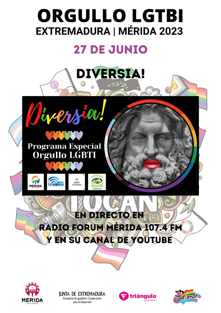 El martes 27 desde Radio Forum Mérida se realizará el Programa Diversia, Especial Orgullo LGTBI, desde las 10 a las 12 horas que podrá seguirse a través del 107.4 fm e internet o en streamming a través de Youtube gracias a Blanco Fotógrafos.