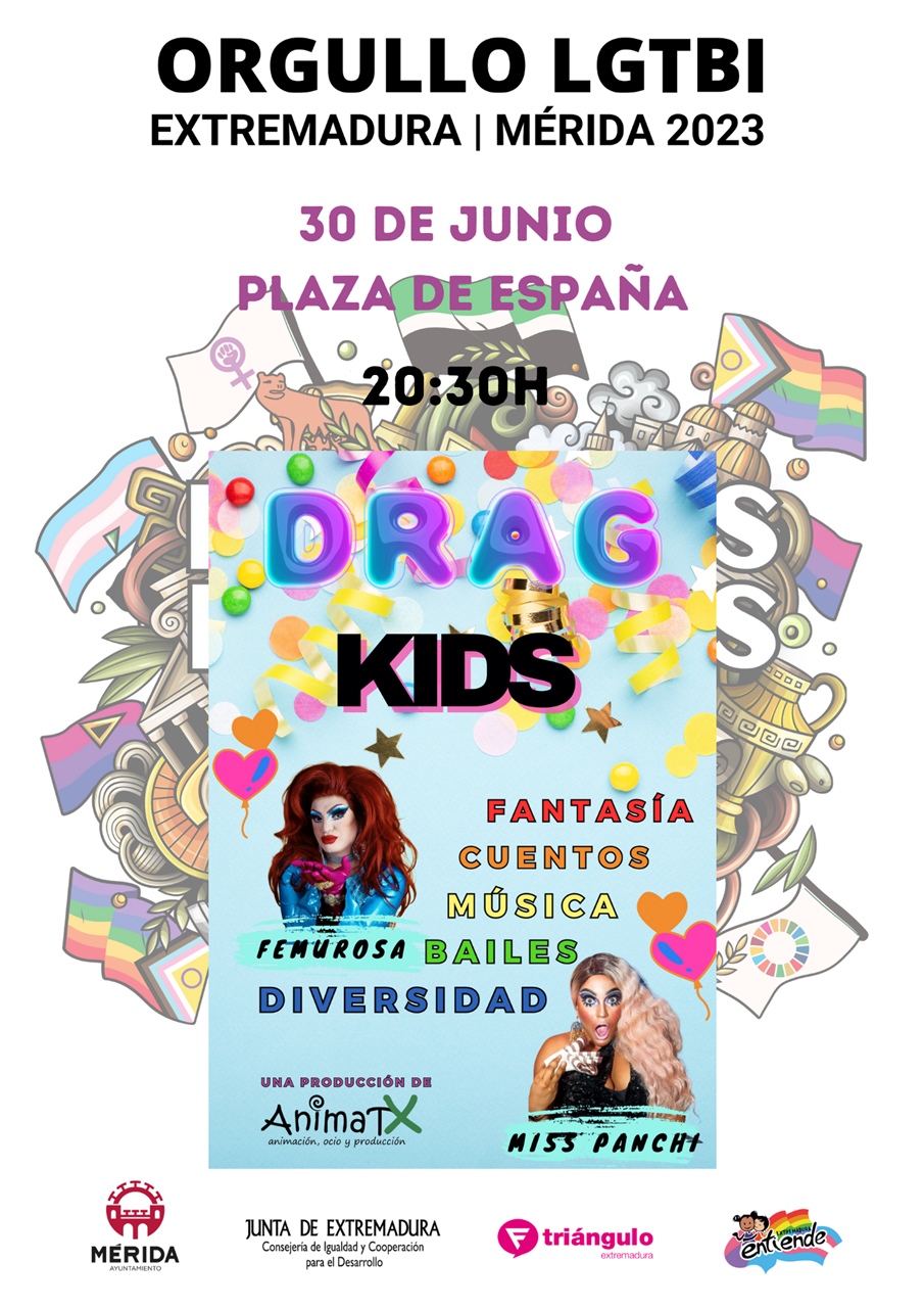 La semana de actividades por el Orgullo LGTBI se cerrará el viernes día 30 en la Plaza de España a las 20:30h con la realización de la actividad DRAG-KIDS, un espectáculo participativo para niñas y niños con bailes y canciones de ayer, hoy y siempre y donde la diversidad es su característica esencial. A las 22h, como broche final se dará paso a el espectáculo músico-teatral “Folklórica Moderna” de Ex3Producciones con una fusión descarada de copla y cabaré y la participación activa del público.