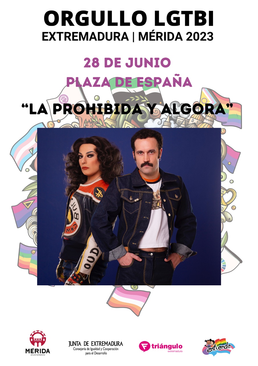 La manifestación por el Orgullo LGTBI de Extremadura tendrá lugar, como cada año el día 28 de junio, día del Orgullo LGTBI a las 20h partiendo del Parque López de Ayala por Avda. Extremadura, Camilo José Cela, Félix Valverde Lillo y Plaza de España que acompañará la batucada ‘Santuka de Fuego’. A su llegada a la Plaza de España se procederá a la lectura del manifiesto para dar paso al concierto de “La Prohibida y Algora” que nos presentaran “El agua y el Rayo”, un trabajo basado en géneros de copla pero con un envoltorio que nos lleva a los sonidos clásico del techno Pop y el italodisco. Durante la manifestación y después del concierto contaremos con la amenización de JC Corrales (Privan de Camp).