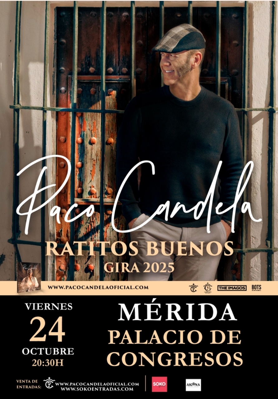 La gira “Ratitos Buenos 2025” tiene como título una de las canciones más populares de su último álbum. Pone nombre a la gira como símbolo de los momentos de comunión entre Paco Candela y su público, ya que para la gran mayoría ese ratito de cante juntos significa un recuerdo para toda la vida. Tras el exitoso lanzamiento de su último álbum y gira “Corazón de Plástico” en 2024, con el que llegó a ser número uno de ventas en música flamenca y top nacional además de llenar los principales teatros de todo el país, Paco Candela llega a Mérida, cantando todos sus grandes éxitos y las canciones que han marcado su carrera artística con un nuevo espectáculo lleno de sorpresas, risas, emociones, sevillanas, tangos, fandangos, baladas, flamenco, arte y “Ratitos Buenos”.