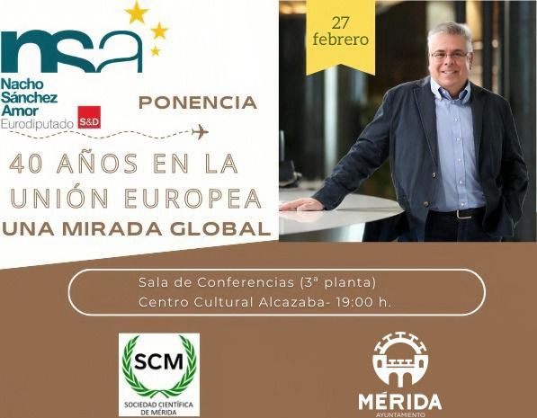 El viernes 27 de febrero, a las 19:00 horas, el diputado europeo Nacho Sánchez Amor ofrecerá la ponencia «40 años en la Unión Europea: Una mirada global» en la Sala de Conferencias del Centro Cultural Alcazaba. Organiza la Sociedad Científica de Mérida en colaboración con el Ayuntamiento de Mérida.