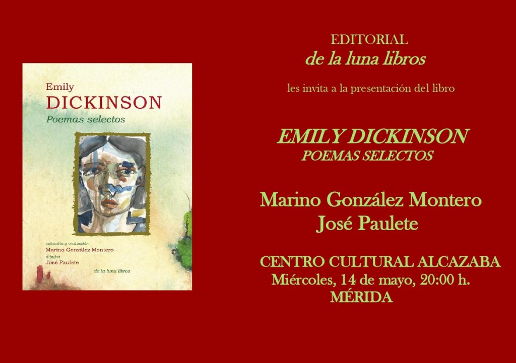 El Centro Cultural Alcazaba acoge el miércoles 14 de mayo, a las 20:00 horas, la presentación del libro ‘Emily Dickinson. Poemas selectos’, una hermosa edición en tapa dura con 120 poemas de esta genial poeta traducidos por Marino González Montero acompañado de 140 dibujos del pintor José Paulete.