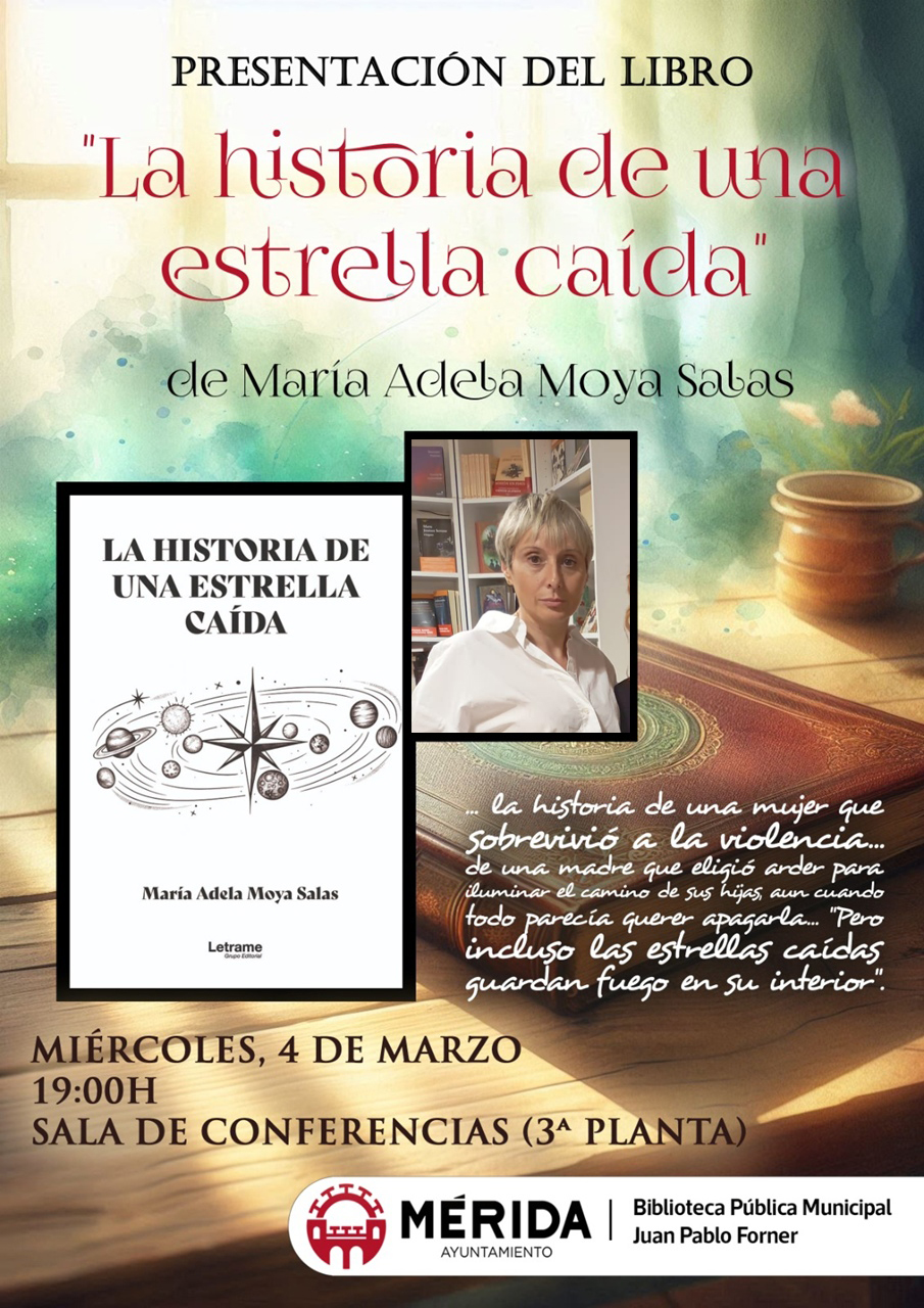 El miércoles 4 de marzo, a las 19:00 horas, la Biblioteca Municipal Juan Pablo Forner organiza la presentación del libro «La historia de una estrella caída» de María Adela Moya Salas