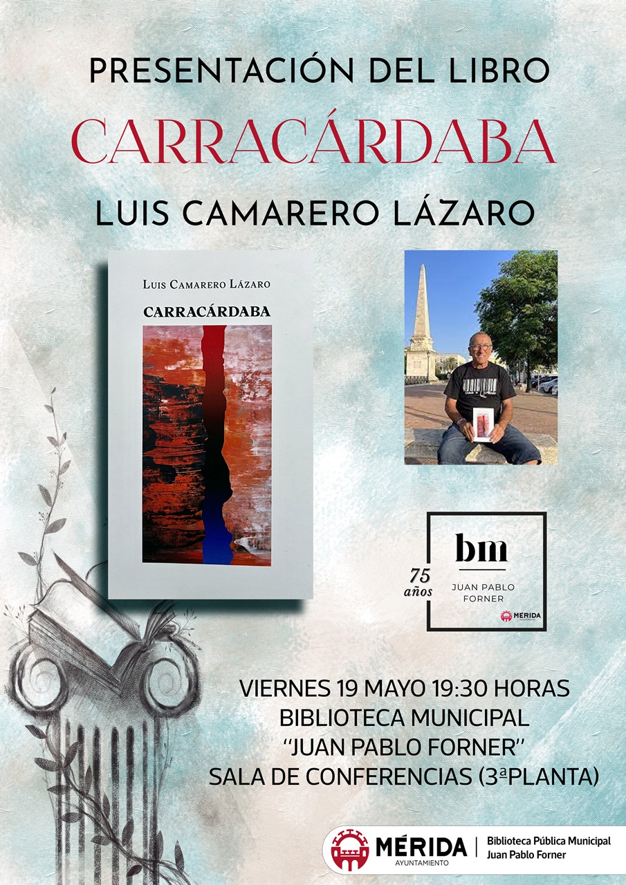Luis Camarero Lázaro presentará su libro ‘Carracárdaba’ el viernes 19 de mayo, en el Centro Cultural Alcazaba, a las 19:30 horas. Organiza la Biblioteca Municipal Juan Pablo Forner