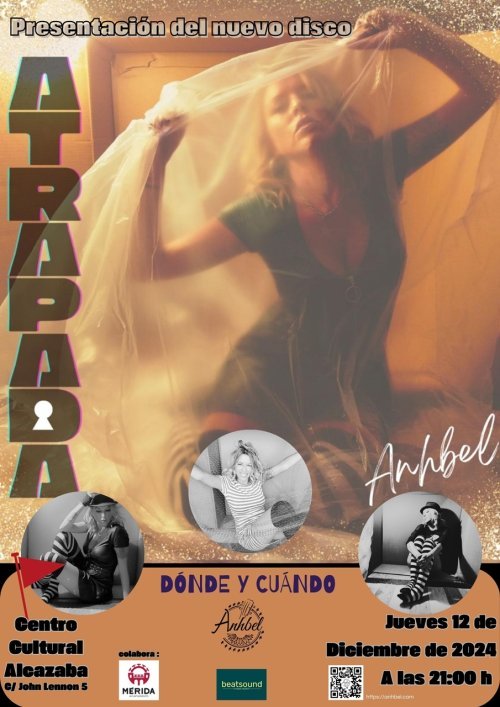 El jueves 12 de diciembre, a las 21:00 horas, tendrá lugar en el Centro Cultural Alcazaba de Mérida la presentación del álbum «Atrapada» de la cantautora extremeña Ana Belén Sánchez Arenas, artísticamente conocida como Anhbel. El acto constará de una breve entrevista a la artista, proyección de videoclip de su primer single, actuación de algunas de sus canciones en formato acústico y firma y venta de discos y merchandising.