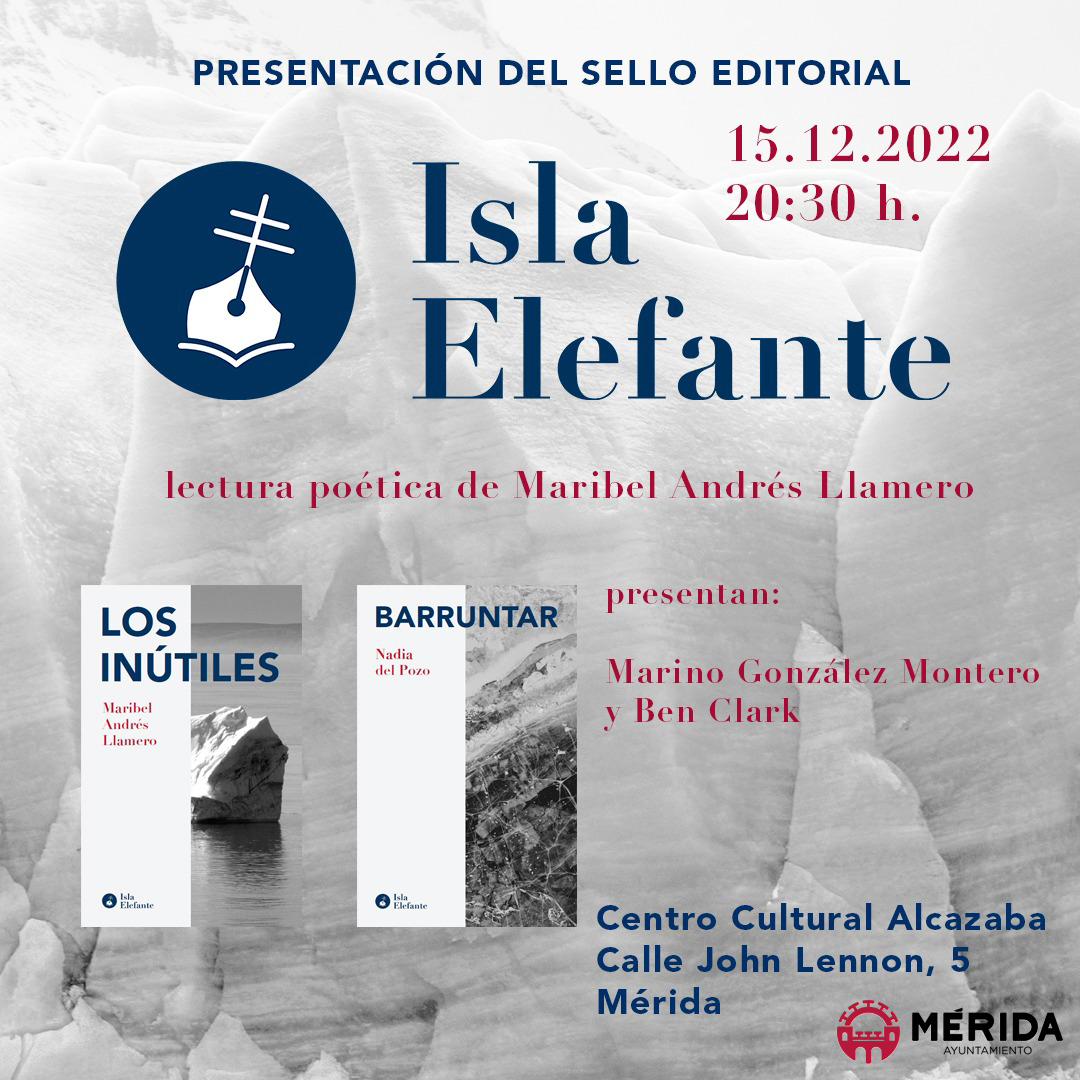 El próximo jueves, 15 de diciembre, a las 20.30 horas, se presenta en la Biblioteca Municipal Juan Pablo Forner el sello editorial Isla Elefante, especializado en poesía contemporánea y dirigido desde Mérida por Ben Clark, premio Loewe de Poesía.